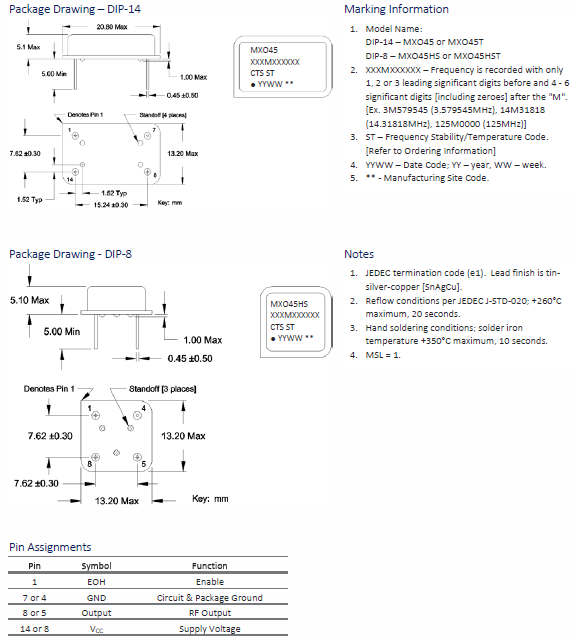 | MXO45-3C-50M0000 | CTS晶振 | MXO45 | 50MHz | 5V | ±50ppm | -20°C ~ 70°C |
