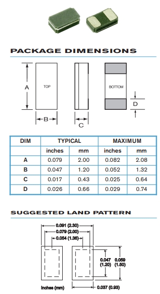 Type 系列: KHz Crystal 腳位 Termination: 2 pad