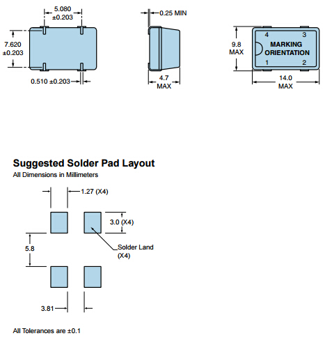 Size/Dimension尺寸 14.0mm x 9.80mm 最小包裝數MPQ: 1000