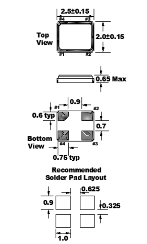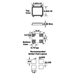 | Frequency Stability頻率穩定度 | ±50ppm | 高度 Package Height: | 0.60mm |