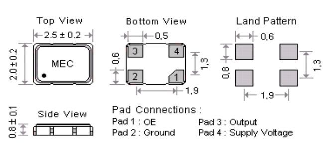 | Type 類型 | TCXO | Package Height高度 | 0.8mm |