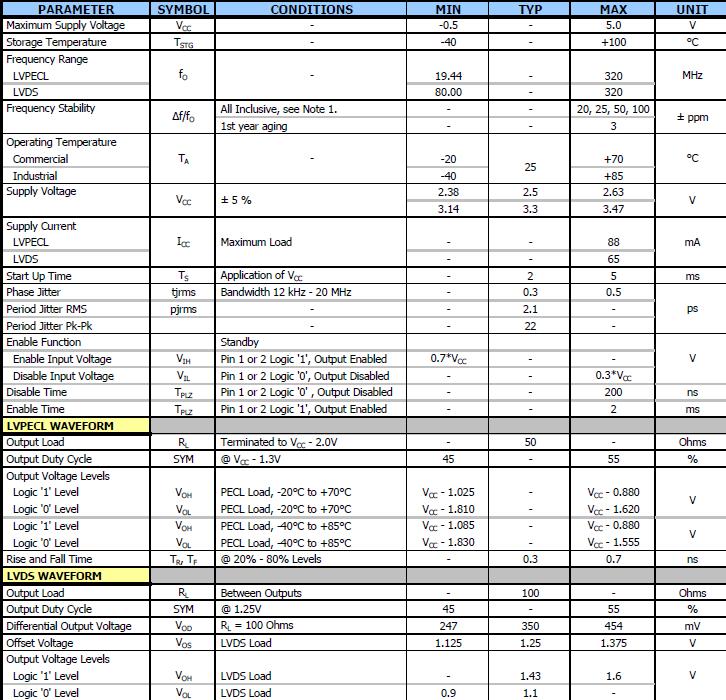 標準的7.0毫米x 5.0毫米,6-Pad表面安裝包,低相位抖動,0.5 ps RMS最大值,LVPECL或LVDS輸出,基本和第三泛音晶體的設計,頻率范圍19.44 - 320 MHz,頻率穩定度±50 ppm標準,操作電壓+ 2.5 vdc或+ 3.3伏直流,操作溫度為-40°C + 85°C,允許輸出標準,磁帶和卷軸包裝標準,eia - 418,符合RoHS.