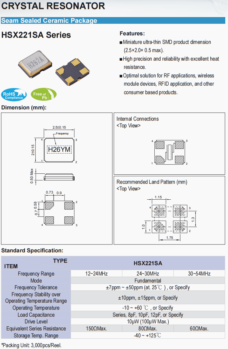 | 負載電荷 | Series, 8pF, 10pF, 12pF, or Specify | ||