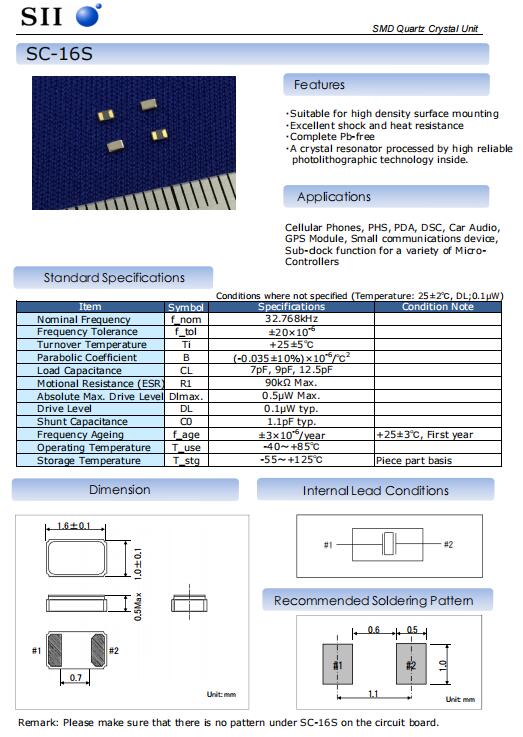 | Q-SC16S03220C5AAAF | 精工晶振 | SC-16S | 32.768kHz | ±20ppm | ±20ppm | 12.5pF |