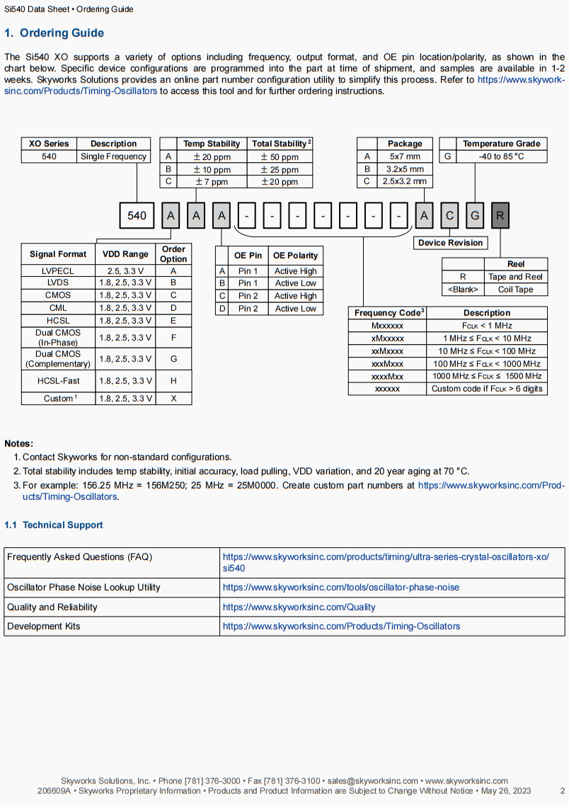 | 540CE100M000DG | Skyworks晶振 | Si550 | VCXO | 100 MHz | CMOS | 3.3V |