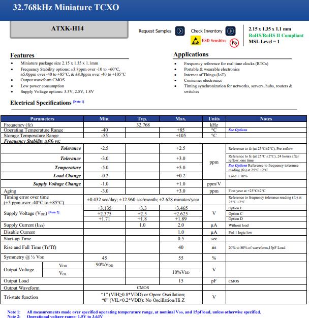 Abracon的ATXK-H14溫補(bǔ)晶振廣泛用于便攜式和可穿戴電子產(chǎn)品,ATXK-H14有源晶振特征
