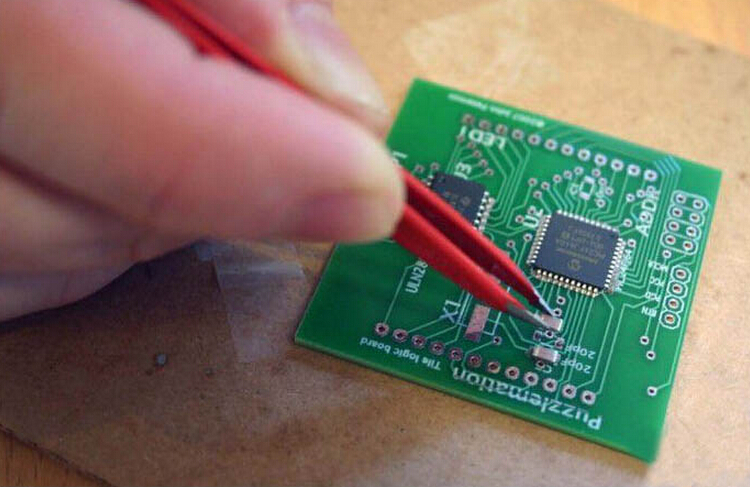 根據晶振引腳間距,選用圓錐形或鑿子形烙鐵頭,在焊盤上鍍上適量的焊錫,注意不要讓焊盤相互之間短路;用鑷子夾持貼片晶振,居中貼放在相應的焊盤上,校準極性和方向,使引腳與焊盤一一對齊。