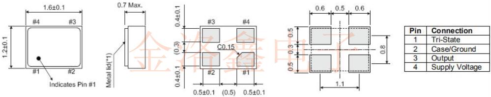 注意: ●除非另有說明,否則所有最小和最大限制都是在溫度和額定工作電壓(輸出為15pF)上指定的. ●建議在Vdd(焊盤4)和GND(焊盤2)之間使用0.1µF旁路電容,以最大程度地降低電源噪聲. |