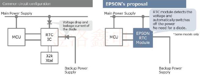 愛普生的RTC模塊可檢測主電源中的電壓下降或上升,并自動切換到備用電源以進行操作,而MOS開關可抑制泄漏電流和電壓下降,與二極管OR電路相比,可以對整個系統進行有效的電源管理.