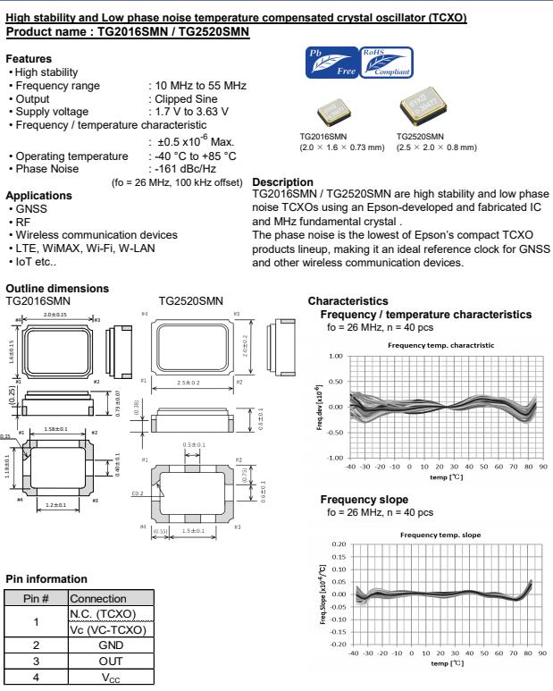| X1G005421020427 | TG2520SMN | 26.000000 MHz | 2.50 x 2.00 x 0.80 mm | 1.700 to 1.900 V | +/-1.5 ppm | -40 to +85 °C | +/-0.50 ppm |