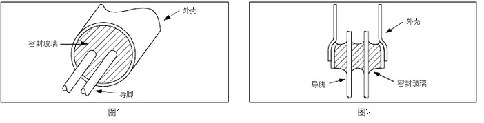 ?構造 圓柱型石英晶振 (VT, VTC) 用玻璃密封 (參閱圖 1 和圖 2)