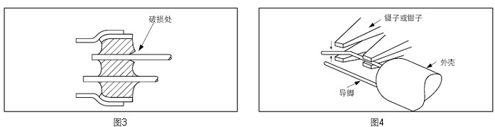 (2)在導腳焊接完畢之后再將導腳彎曲時,務必請留出大于外殼直徑長度的空閑部分 (參閱圖7)。