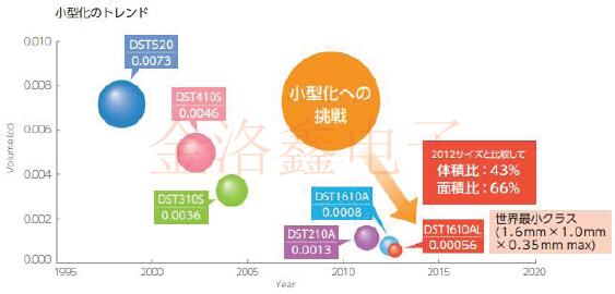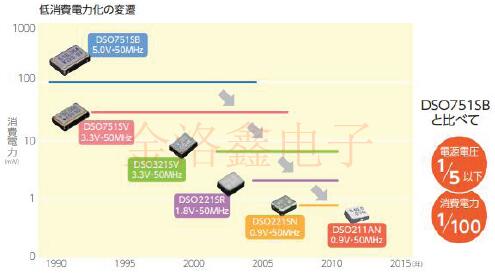 通過降低晶體產品的功耗,可以降低使用它們的電子設備(如計算機,智能手機和平板電視)的功耗.一些功率是由熱能產生的,并且隨CO2的產生而產生,因此功耗的減少有助于減少CO2.以石英晶體振蕩器為例,DSO221SN(2.5×2.0×0.815mm)及其小型版本DSO211AN(2.0×1.6×0.72mm)的電源電壓為0.9V,約為DSO751SB的5V的1/5或更小.功耗已從90mW降低到0.9mW,不到1/100. 小型化的措施: