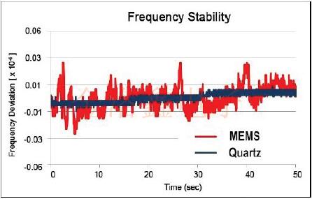 圖6:石英振蕩器和MEMS振蕩器穩(wěn)定性圖
